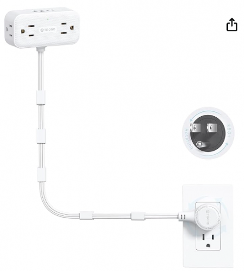 - Get TROND 360° Rotating Plug Outlet Extender, 36 in Flexible Flat Cord, 4 Multi Outlets 4 USB Ports, Extendable Wall Splitter Surge Protector for Hard-to-Reach Socket Behind Couch, Nightstand, Desk, White, for $23.99, Save 11% off