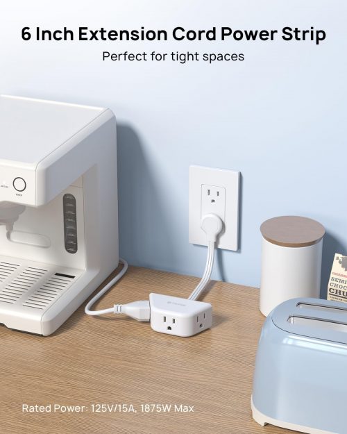 • 6-inch Short Extension Cord: The 0.5ft power cord promotes a tidy appearance by minimizing cord tangling and clutter, particularly in spaces like desktops, kitchens, bathrooms, and entertainment centers. Its versatile 0.5 feet length caters to specific needs across various applications, supporting a maximum power of 1625W