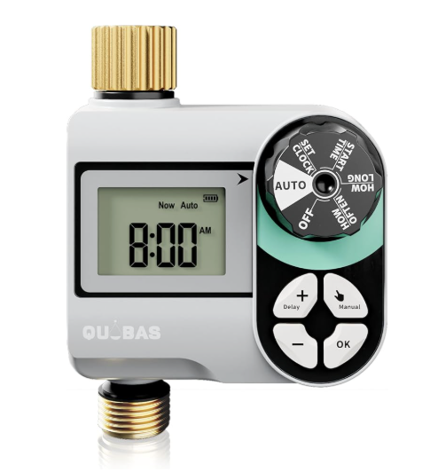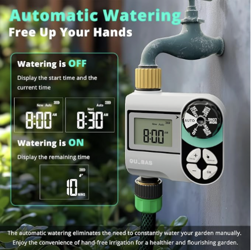 - Get QUOBAS Sprinkler Timer, Programmable Hose Timer with Brass Inlet & Outlet, Water Timer for Garden Hose with Rain Delay / Automatic / Manual Watering System, Digital Drip Irrigation Timer for Yard, Lawn, for $19.99, (When you Redeem the Extra 50% off Coupon at Checkout), Save 50% off.