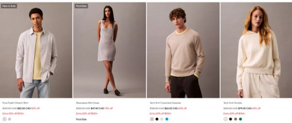 The End of Season Sale is on now at Calvin Klein Canada, and through the end of today you can save up to 70% on select styles for men and women. Additionally, when you spend $100 or more, you will save an extra 20% on your purchase, and this discount will automatically be applied to your cart at checkout. Here are some of the current sale styles up to 70% off: