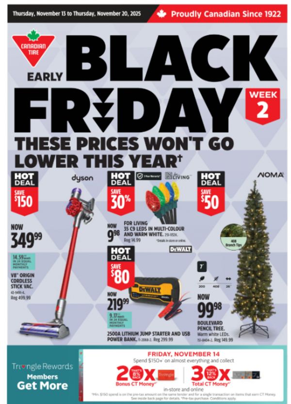 It is week two of Canadian Tire’s early Black Friday deals, and there are a new set of deals that are valid until November the 20th. There are deals on Dyson vacuums, Christmas trees, power tools, cookware, and much more. Here are some of the savings from this week’s Canadian Tire flyer: