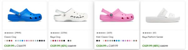 For a limited time, Crocs Canada has select styles on sale for up to 50% off. There are also Jibbitz charms on sale for $3 and $8, and there are no promotion codes required for these offers. Shipping is free on orders of $54.99 or more, and here are some of the savings available at Crocs: