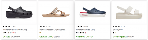 Click here to save up to 50% on select styles at Crocs Canada.