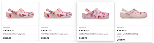 Crocs Canada has limited edition Valentine’s Day styles available, including clogs and Jibbitz. The Classic Valentine’s Day Clog is $69.99, and there is a Classic Crafted Floral Clog for $84.99. There are also many styles that are up to 40% off, and shipping is free on orders of $59.99 or more. Here are some of the markdowns that are up to 40% off: