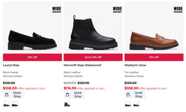 Click here to save an extra 10% on select styles at Clarks Shoes.