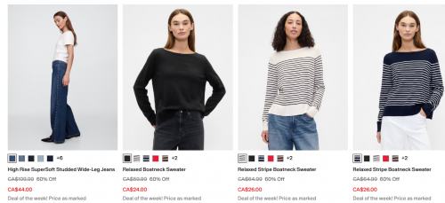 Until February the 3rd, almost everything is 30-60% off sitewide at Gap Factory Canada, and you can save an extra 10% off your purchase for a limited time. The extra 10% off is also valid until February the 3rd and will be automatically applied at checkout. There is a deal of the week on sweaters and jeans, and they are now 40% off. Clearance styles are currently an extra 40% off, and shipping is free for members on orders of $50 or more. Here are some of the women’s styles on sale at Gap Factory Canada: