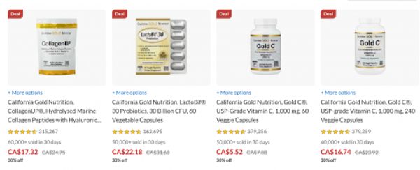 • California Gold Nutrition Gold C USP Grade Vitamin C 500mg 240 Veggie Capsules $16.07 (reg.$19.81, save 15%)