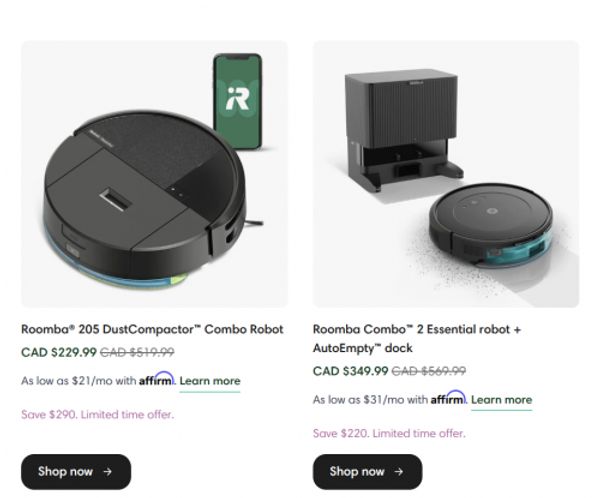 iRobot Canada currently has the Roomba 205 DustCompactor Combo Robot on sale for $229, regularly $519.99. They also have the Roomba Combo 2 Essential Robot + AutoEmpty Dock on sale for $349.99, regularly $569.99. Accessories are also on sale right now, and until April the 23rd there is a buy more, save more offer. Get $10 off when you buy two of the same product, get 15% off when you buy three, or 20% off when you buy four. Shipping is free on all orders from iRobot, and here are some of the accessories included in the buy more, save more offer: