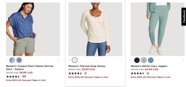 Click here to save an extra 50% on clearance markdowns at Eddie Bauer Canada.