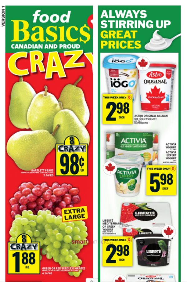 This week there are some great deals on produce at Food Basics, including Bartlett pears for 98 cents a pound, and extra large red or green seedless grapes for 1.88 per pound. Here are some of the other advertised flyer deals this week at Food Basics: