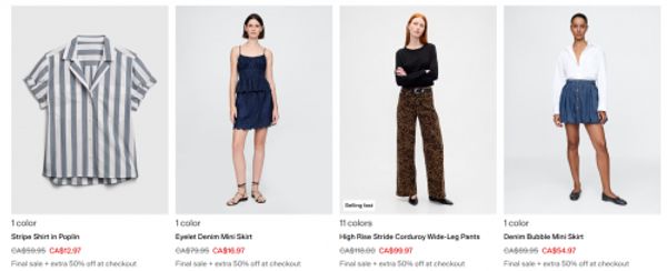 Shop the Long Weekend Event at Gap Canada, and save 40-60% off select sweaters, sweats, and more. Clearance styles are now an extra 50% off for a limited time, and the additional discount will be applied at checkout. Shipping is free on orders of $50 or more when you are signed in to your account, and here are some of the styles for women that will be further reduced by 50% on your cart: