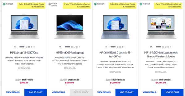 - HP 15-fc0074ca Laptop with Bonus Wireless Mouse $1249.99 (reg. $1,409.99, save $250)