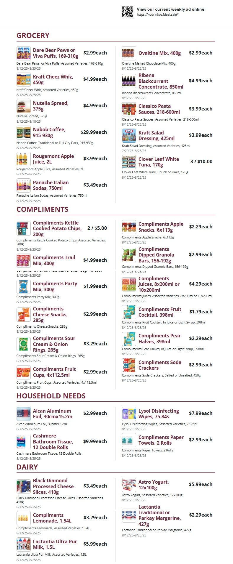 Kudrinko's Flyer August 12 to 25