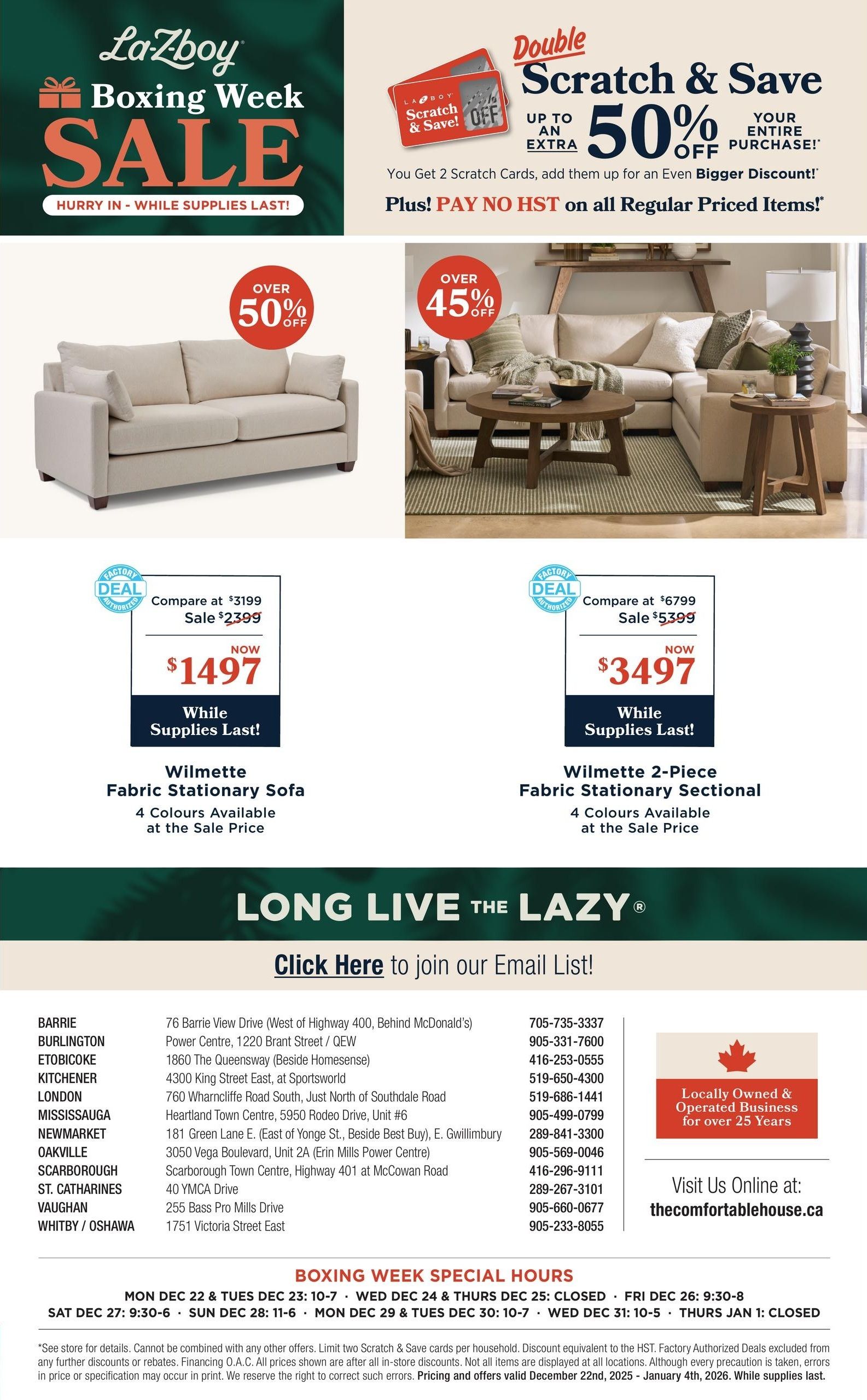 La-Z-Boy (GTA) Flyer December 22 to January 4