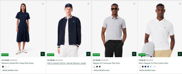 Shop the Spring Refresh Sale at Lacoste Canada, and save 30% on select new season styles. There are also sale styles for men and women with markdowns of up to 50% off. Discounts are reflected in the prices shown, and shipping is free on all orders with no minimum. Here are some of the savings available now at Lacoste: