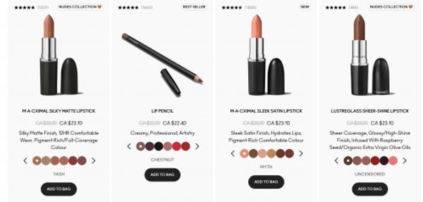 Click here to shop lip products 30% off at Mac Cosmetics Canada.