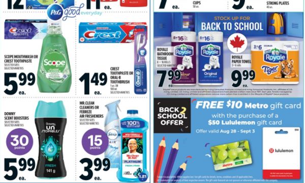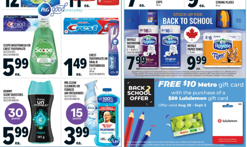 Metro Canada has a gift card offer this week, and beginning today you will receive free $1o Metro gift card with the purchase of a $50 lululemon gift cart. You are able to do this offer multiple times, but be sure to purchase $50 gift cards in separate transactions to ensure that you get a $10 Metro gift card for each one. If you will be visiting Metro for this deal here are some of the other flyer deals valid August the 28th to September the 3rd: