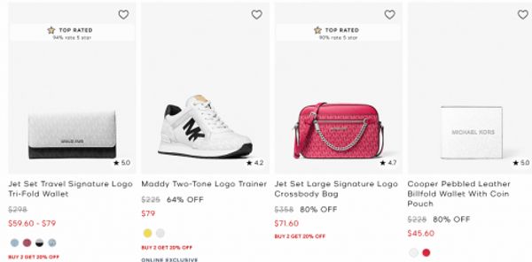 Michael Kors Canada has clearance styles up to 80% off, and for a limited time select styles are an extra 20% off when you buy two or more. This extra savings will be automatically applied in your cart when two or more qualifying items have been added, and here are some of the styles that are included in this offer: