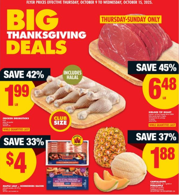 One of the best deals at No Frills starting tomorrow is Sirloin Tip Roast for for $6.48/lb, a savings of 45%. No Frills usually has this as a special when there is a holiday, so you can stock up now, but it will likely be on sale again just before Christmas. Take note that this sale price is valid for 4 days only.Here are some of the other deals for the upcoming week at No Frills: