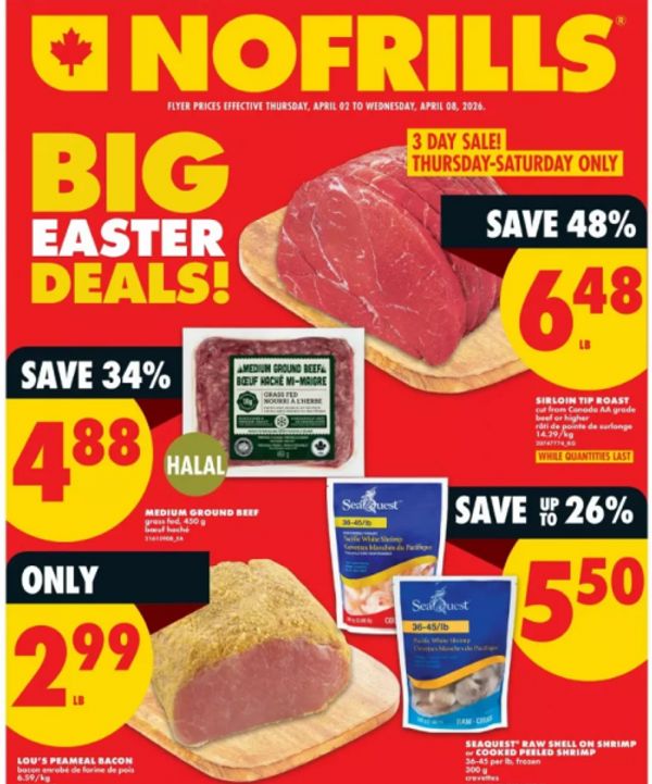 No Frills typically has a three day sale on Sirloin Tip Roast just before every holiday and this week is no exception. From Thursday, April the 2nd, to Saturday, April the 4th, No Frills has Sirloin Tip Roast for $6.48 per pound, a savings of 48%. There may be limits, and they may go quickly, so get there as soon you can for this deal. Here are some of the other deals coming up at No Frills: