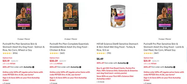 - Purina® Pro Plan Large Breed Adult Dry Dog Food – Chicken & Rice $55.19 with promo code (reg. $68.99)