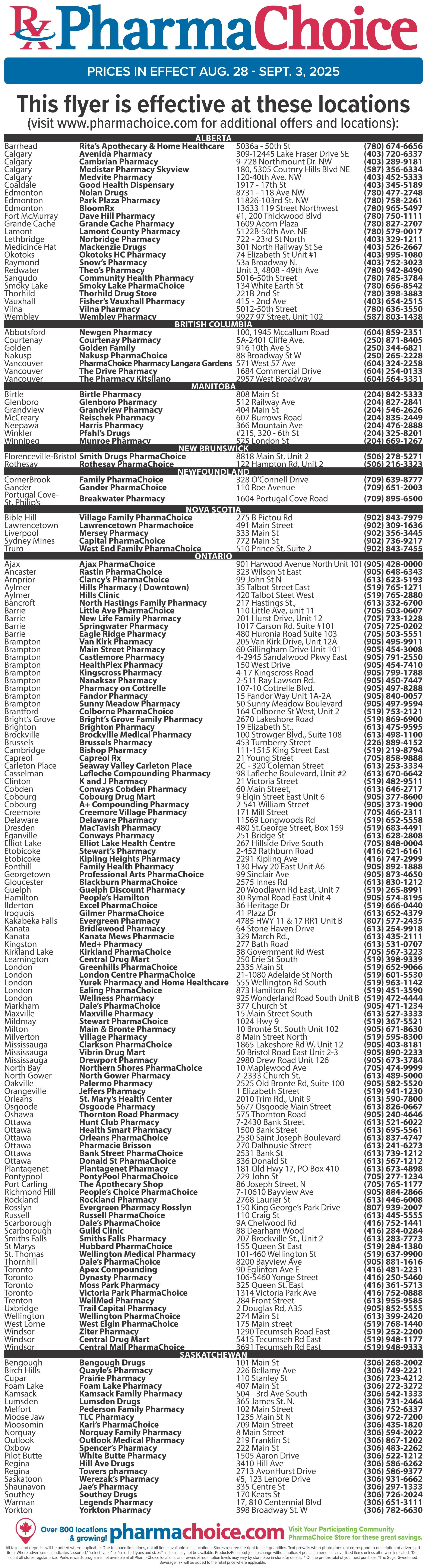 PharmaChoice Health Centre Flyer August 28 to September 3