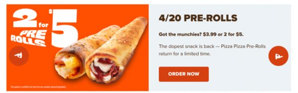 Pizza Pizza Canada has 4/2o Pre-Rolls for $3.99, or 2 for $5. They are available for a limited time, and there are four varieties to choose from, including pepperoni, pineapple express, veggies, and creamy garlic pepperoni. Here are some of the other deals that are currently available at Pizza Pizza Canada:
