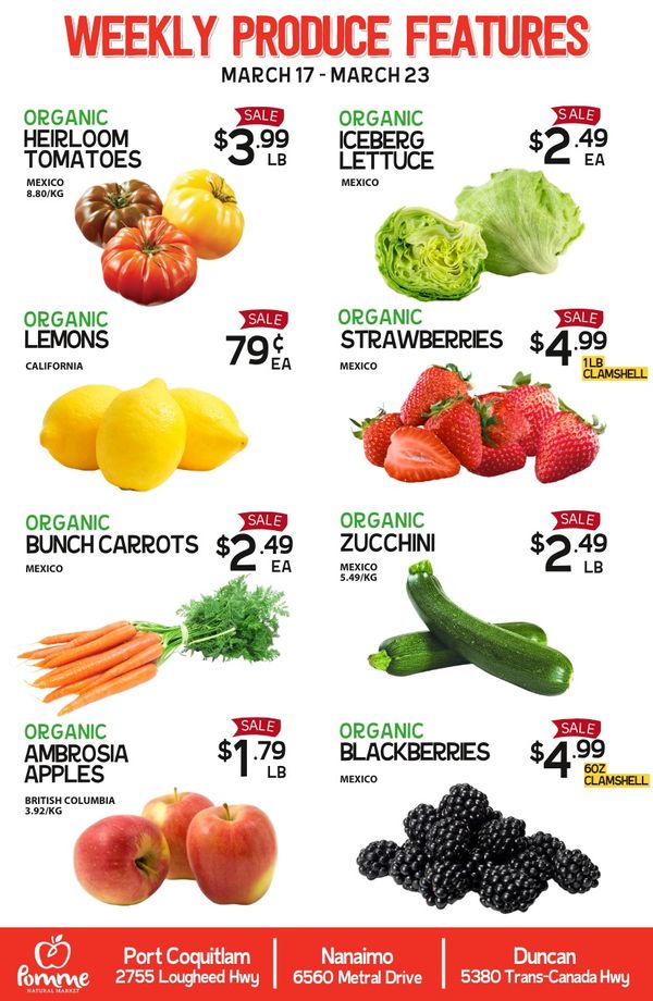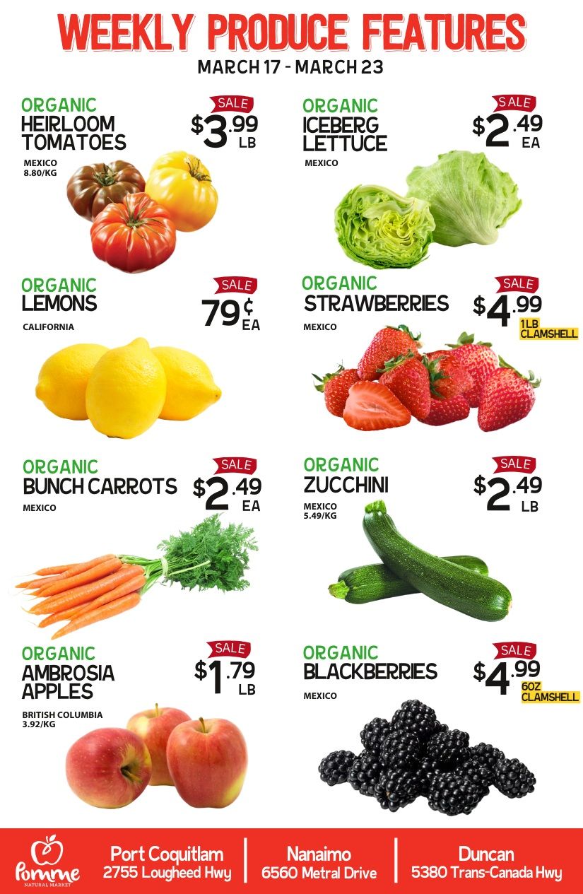 Pomme Natural Market Weekly Produce Flyer March 17 to 23