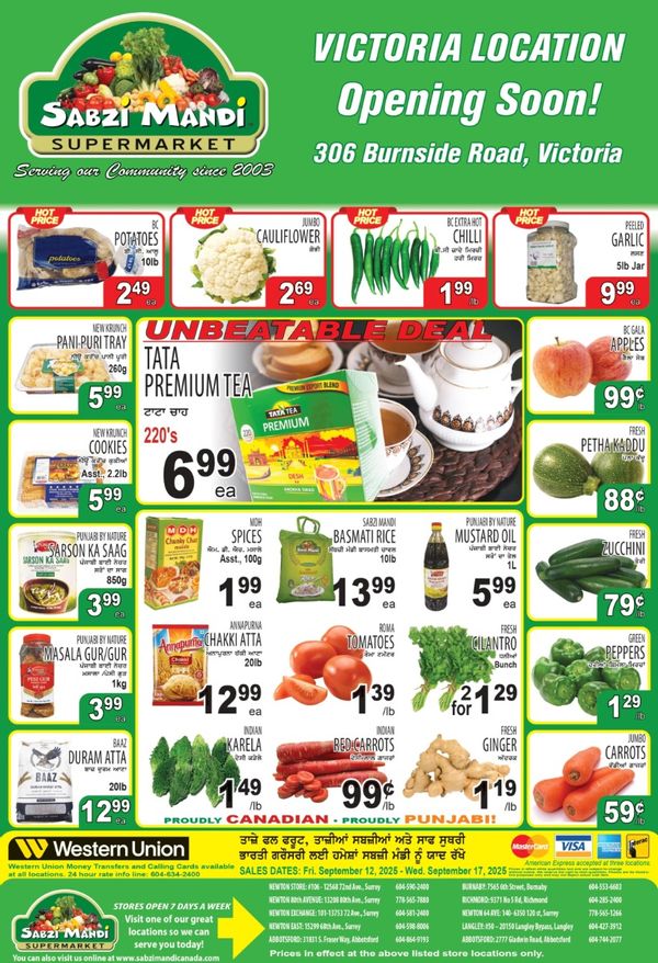 Sabzi Mandi Supermarket (Lower Mainland) Flyer September 12 to 17