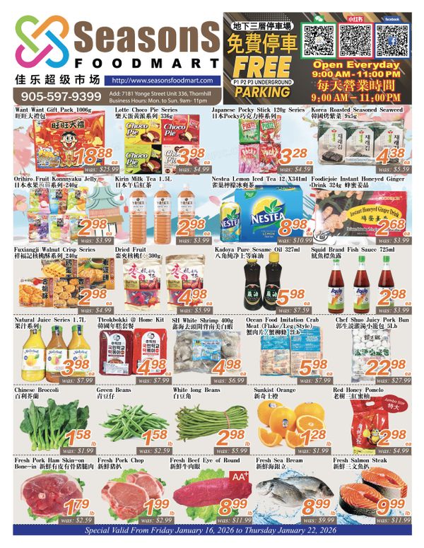 Seasons Food Mart (Thornhill) Flyer January 16 to 22