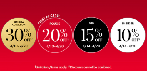The Spring Savings Event Sale has begun at Sephora Canada, where Rouge Members have first access and can save 20% off their purchase until April the 20th. From April the 14th to the 20th VIB Members can save 15% off their purchase, and Insiders will save 20% off their purchase. From April the 10th to the 20th, the Sephora Collection is 30% off for everyone when you use the promo code SPRINGSALE at checkout.