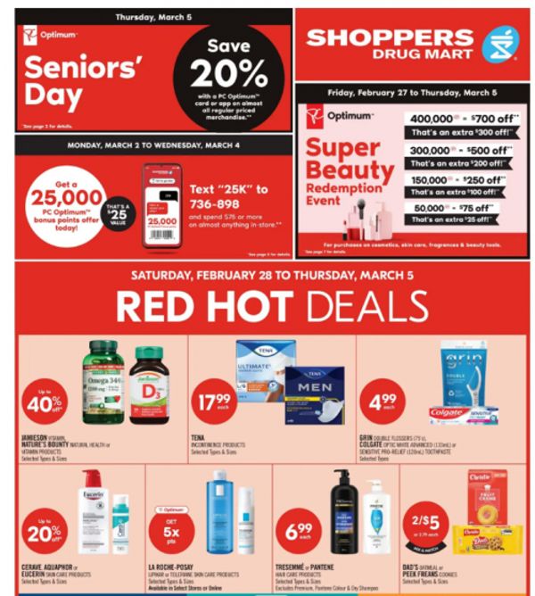 This weekend you can earn 20x the PC Optimum points at Shoppers Drug Mart Canada with the offer in your app. Your personal offer is valid for one time use until March the 1st, and if you plan on shopping this weekend there is also a two-day sale. Here are some of the two day offers this week at Shoppers Drug Mart: