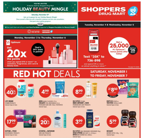 This weekend at Shoppers Drug Mart Canada, earn 20,000 PC Optimum points using the personal offer you will find in your app. Different accounts will receive different offers, so you can check what you will need to spend to get the 20,000 points. From November the 3rd to the 6th there is a 20x the points offer when you spend $75 or more on cosmetics and fragrances, and there are many holiday sets that are now available. There is also a two-day sale this weekend, and here are some of the limited time savings: