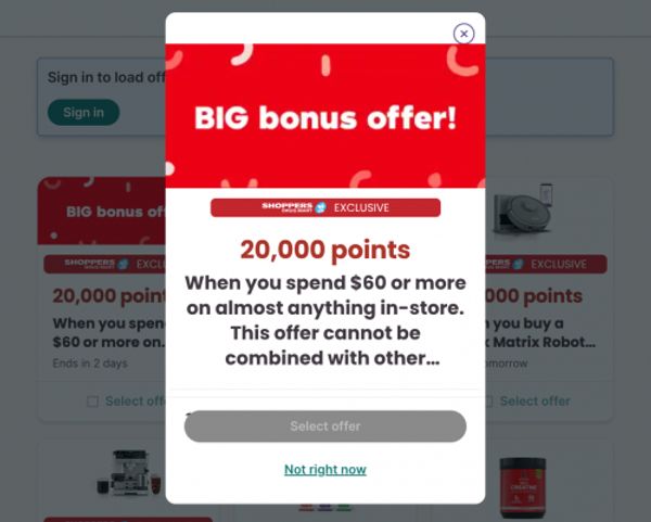 Click here to load the offer for 20,000 PC Optimum points when you spend $60.