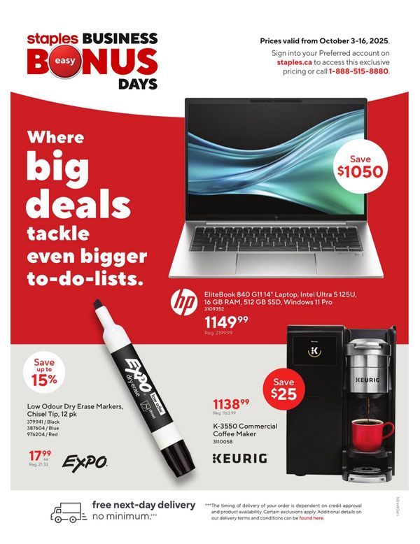 Staples Business Bonus Days Flyer October 3 to 16