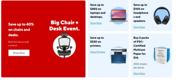 Shop the Big Chair + Desk Event sale on now at Staples Canada and save up to 40% on select items. You can also save up to $450 on laptops and desktops, up to $100 on headphones and speakers, up to $230 on printers, and there is also a selection of clearance available. Shipping is free on orders of $35 or more, and here are some of the best deals of the week: