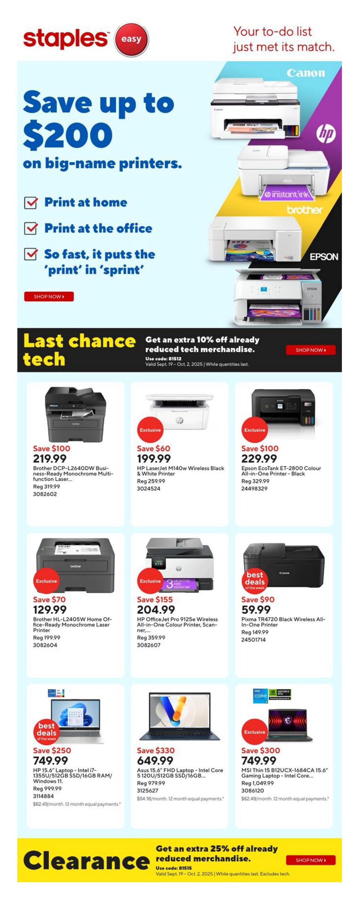 Staples Flyer September 19 to 25