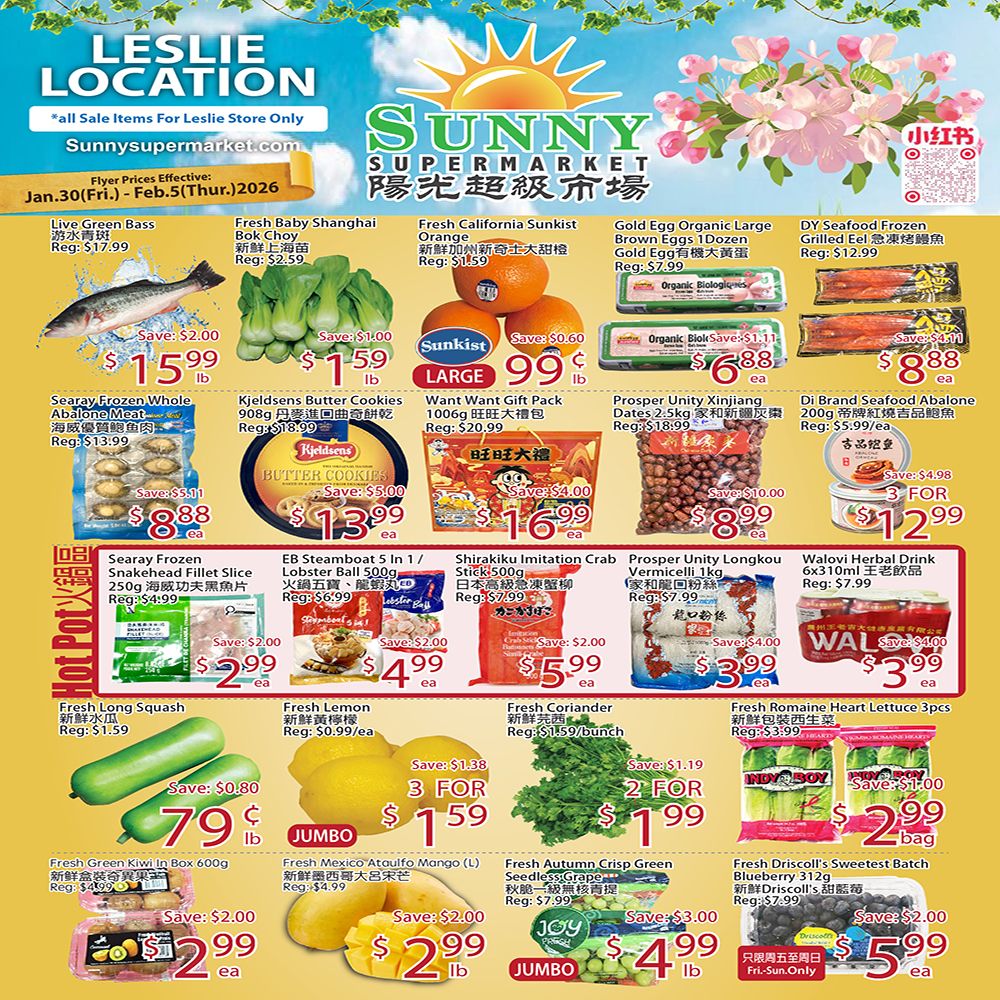 Sunny Supermarket (Leslie) Flyer January 30 to February 5