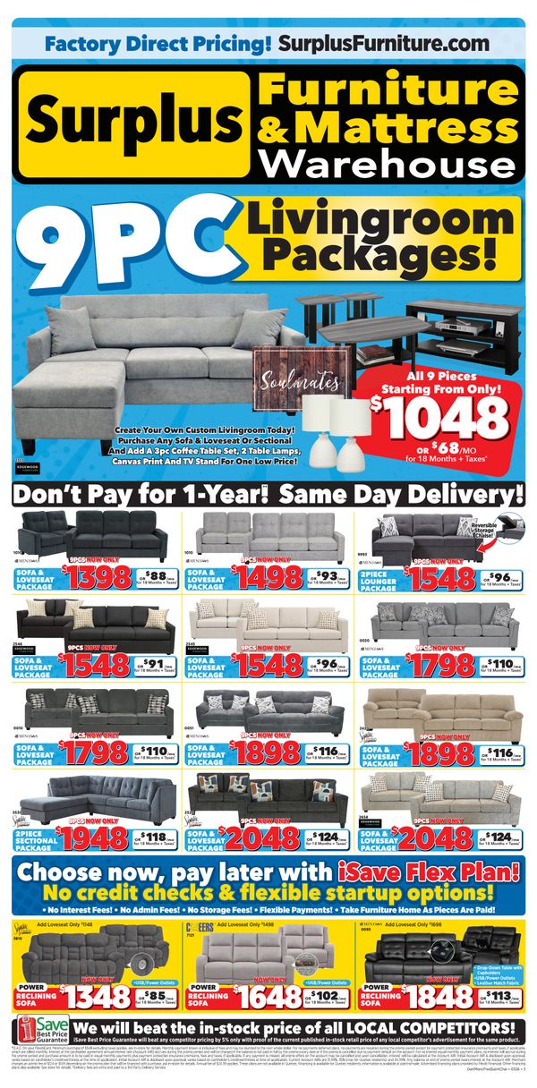 This Surplus Furniture And Mattress Warehouse flyer has 0 views