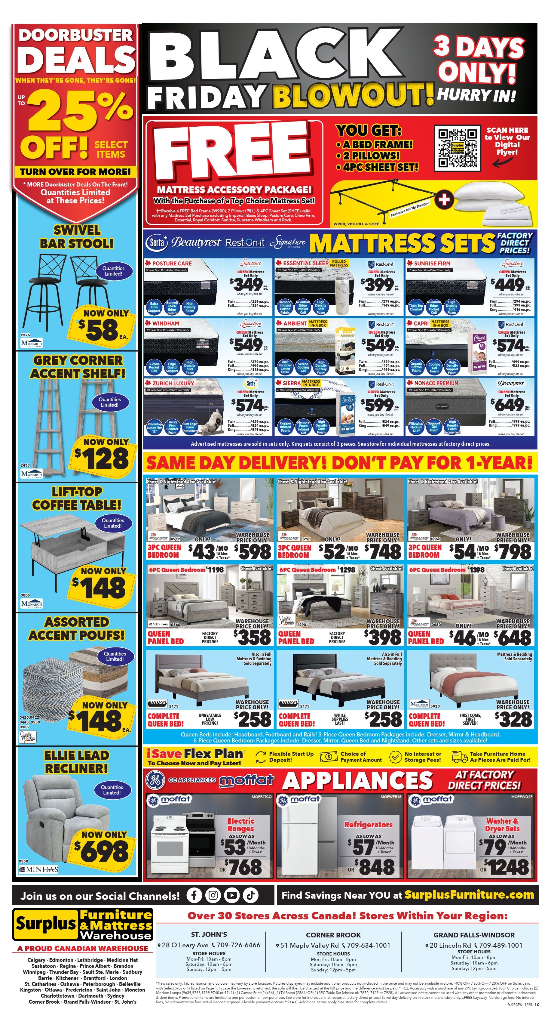 Surplus Furniture & Mattress Warehouse (St. John's, Corner Brook, Grand Falls Windsor) Flyer November 24 to 30