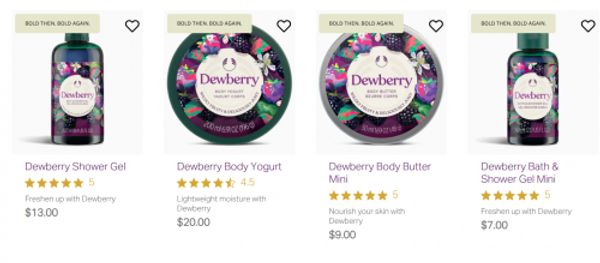 The Body Shop Canada has a Winter Sale on now, and there are select products that are up to 60% off. There is also a buy more, save more offer for Lunar New Year, and you can save 20% when you buy two select products, or 30% when you buy 3 or more products. This offer is valid in-store and online, and if you’re shopping online orders of $65 or more will ship for free. Also, one of the most iconic Body Shop scents has returned! A line of Dewberry products is now available at The Body Shop. Several items are sold out online, but they may be available in store. Here are some of the Dewberry products that are available:
