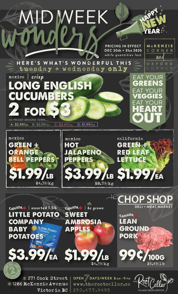 The Root Cellar Mid-Week Flyer December 30 and 31
