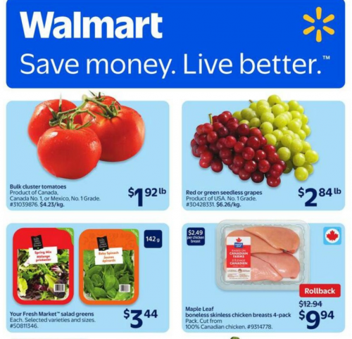 Starting tomorrow Walmart Canada has a great deal on Maple Leaf 4 packs of boneless skinless chicken breasts. The 4 pack is on Rollback for $9.94 per package, a savings of $3 each. At this price, if you are able to find packages that weigh 1.2kg or higher, you will be paying $3.76 per pound or less! Here are some of the other deals that start tomorrow at Walmart: