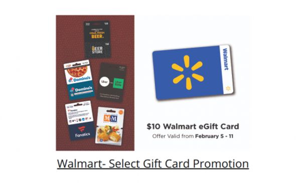 Walmart Canada has another gift card offer coming up, and this offer begins on February the 5th and is valid until February the 11th. With the purchase of select $50 gift cards you will receive a $10 Walmart Canada eGift card. The gift cards that are valid for this particular offer are $50 denominations of Beer Store, Dominos, Uber, Fanatics, or M&M Food Market. Some of these gift cards are rarely part of these offers, so stock up if you are able to use these gift cards.