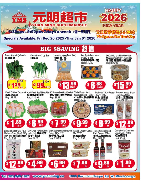 Yuan Ming Supermarket Flyer December 26 to January 1
